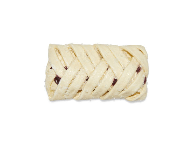 Hrskava ispletena slastica od lisnatog tijesta izrađena prema tradicionalnom danskom receptu. Napunjena slastičarskom kremom i borovnicama. Završena ukrasnim šećernim preljevom.