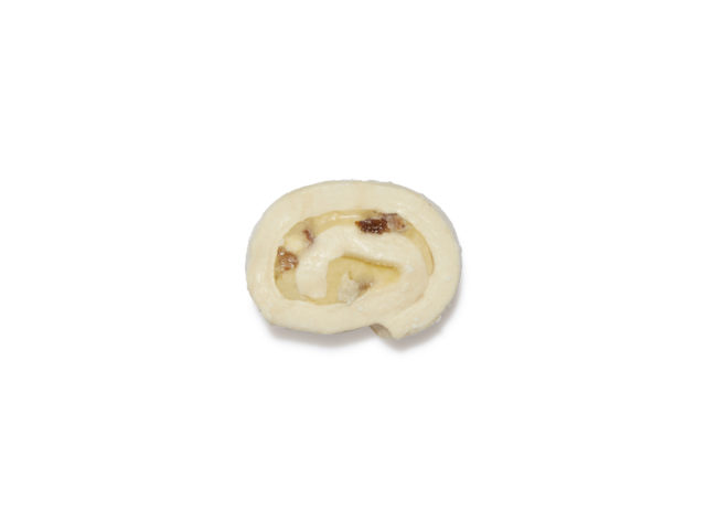 Hrskavi okrugli savitak napunjen kremastom slastičarskom kremom i grožđicama sultana. Može lako utažiti vašu glad ili ukloniti žudnju za nečime slatkime.